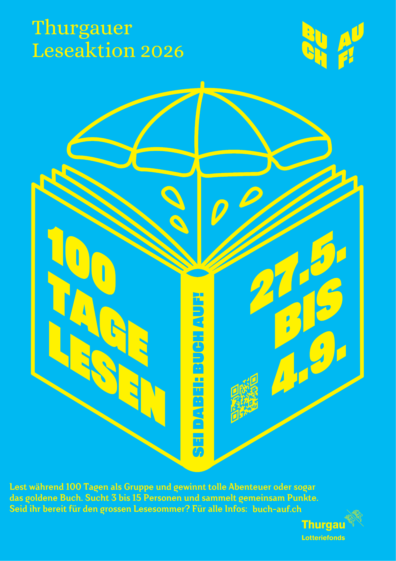 In Zusammenarbeit mit den Thurgauer Buchhandlungen und Bibliotheken hat der Verein Lesen Thurgau die Sommer-Leseaktion ins Leben gerufen. Der Lesewettbewerb läuft während 100 Tagen, von Ende Mai bis Anfang September. Angesprochen ist die gesamte Thurgauer Bevölkerung, von Jung bis Alt. Die Teilnahme ist in Teams von 3 bis 15 Personen möglich, sei das im Freundeskreis, im Verein, im Quartier oder in der Familie.
